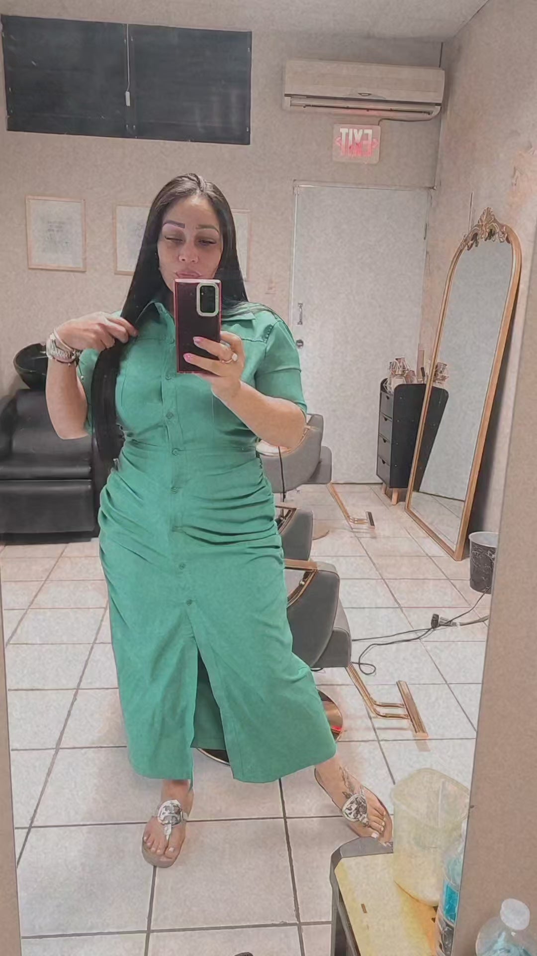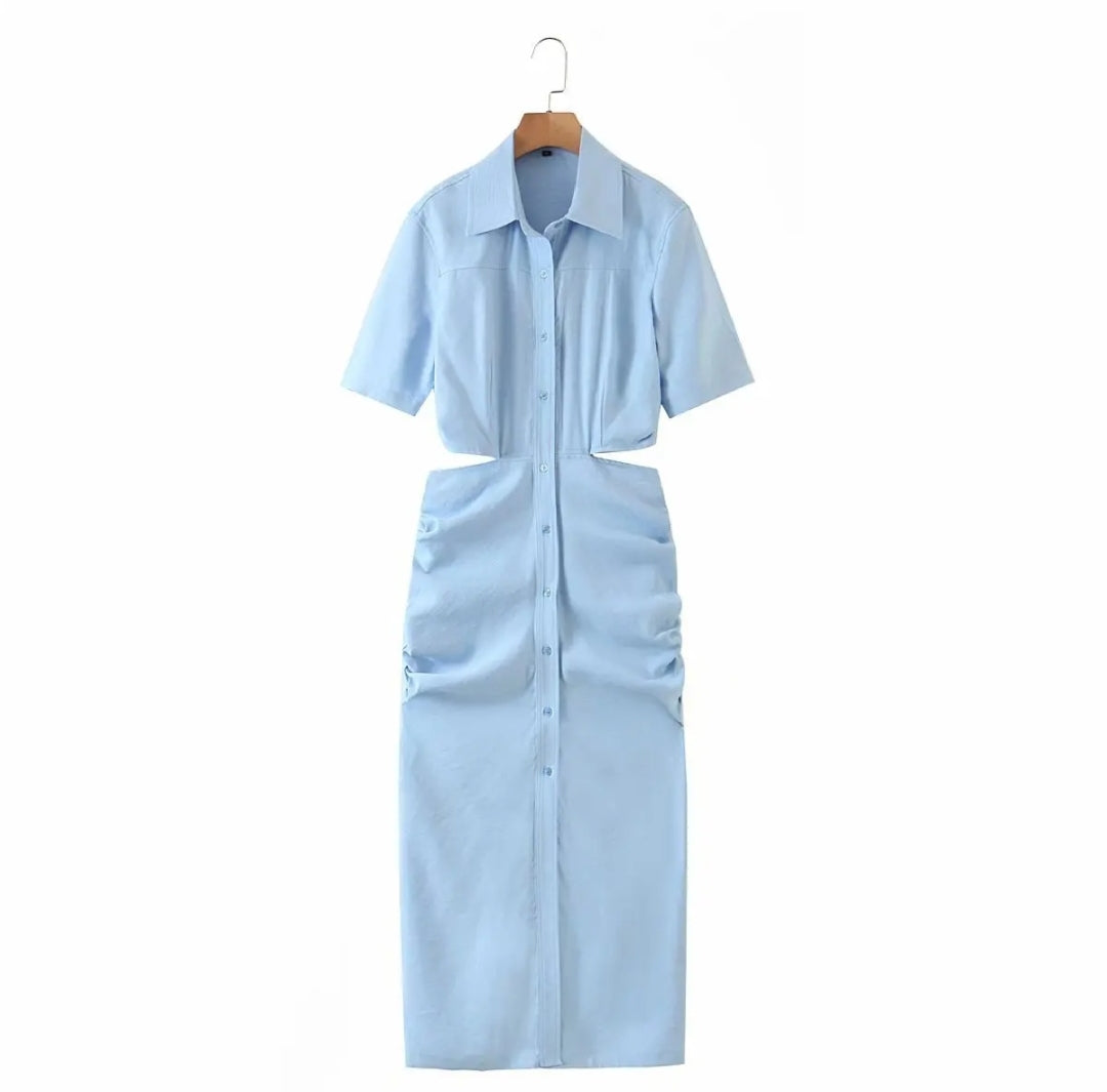 Traje Midi con escote en parte posterior, en algodón con botones y cuello, corre al size