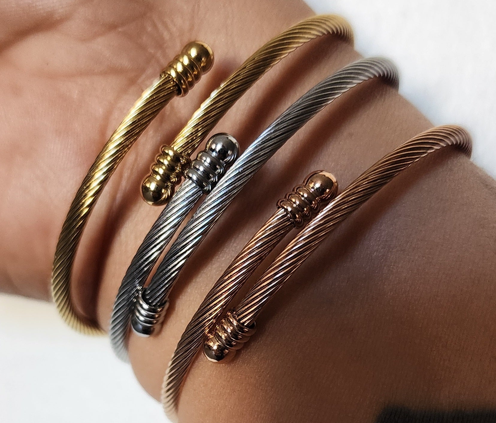 Bangle Ajustable en acero inoxidable con plaquita en forma de corazón