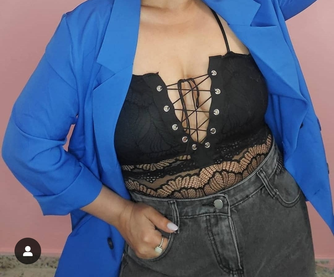 Bodysuit en encaje, simulando trasparencias, 100% algodón, manguillos ajustables y en el aréa del busto tiene gavete para ajustar escote y doble forro para cubrir esa área.