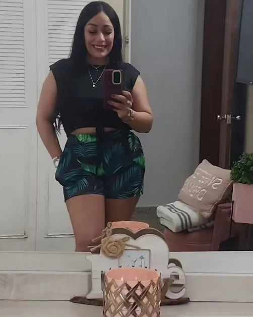 Camisa tiene elastico en la cintura simulando crop top