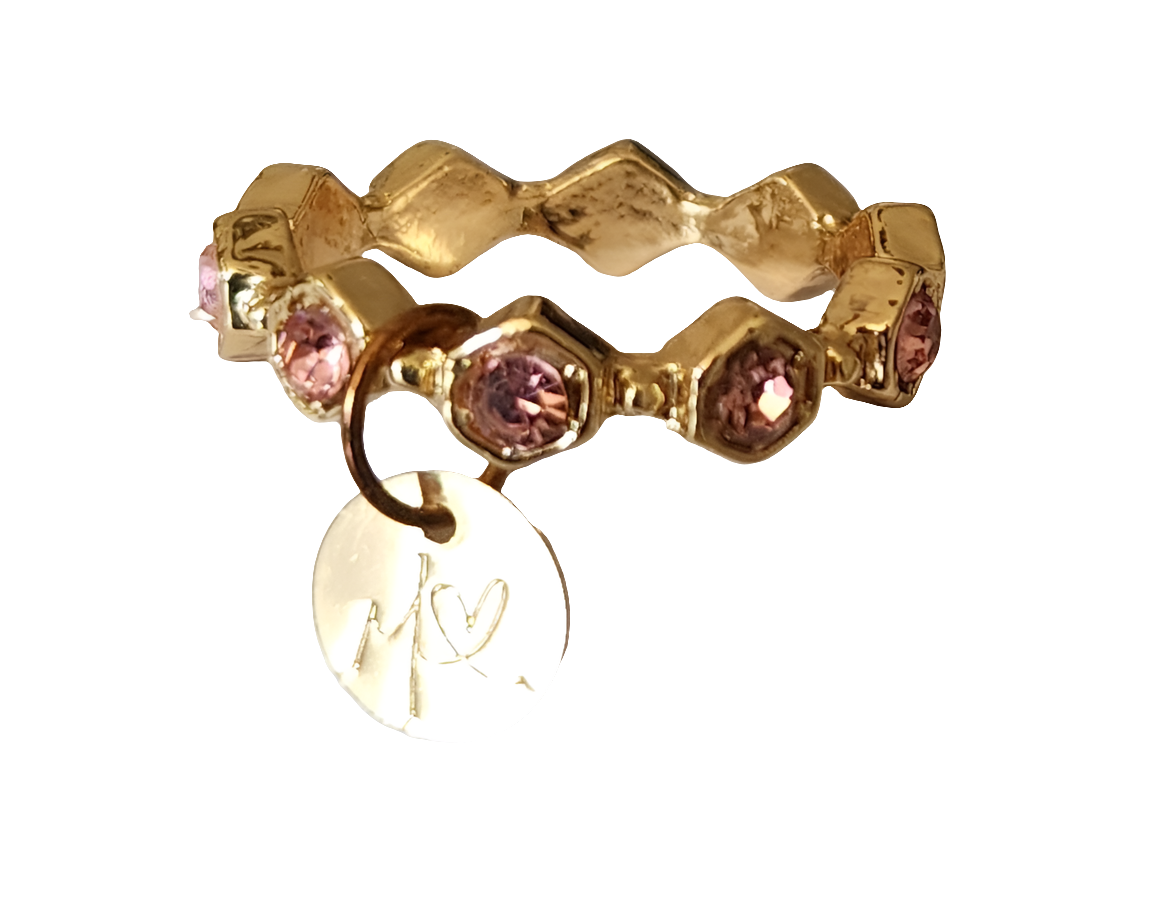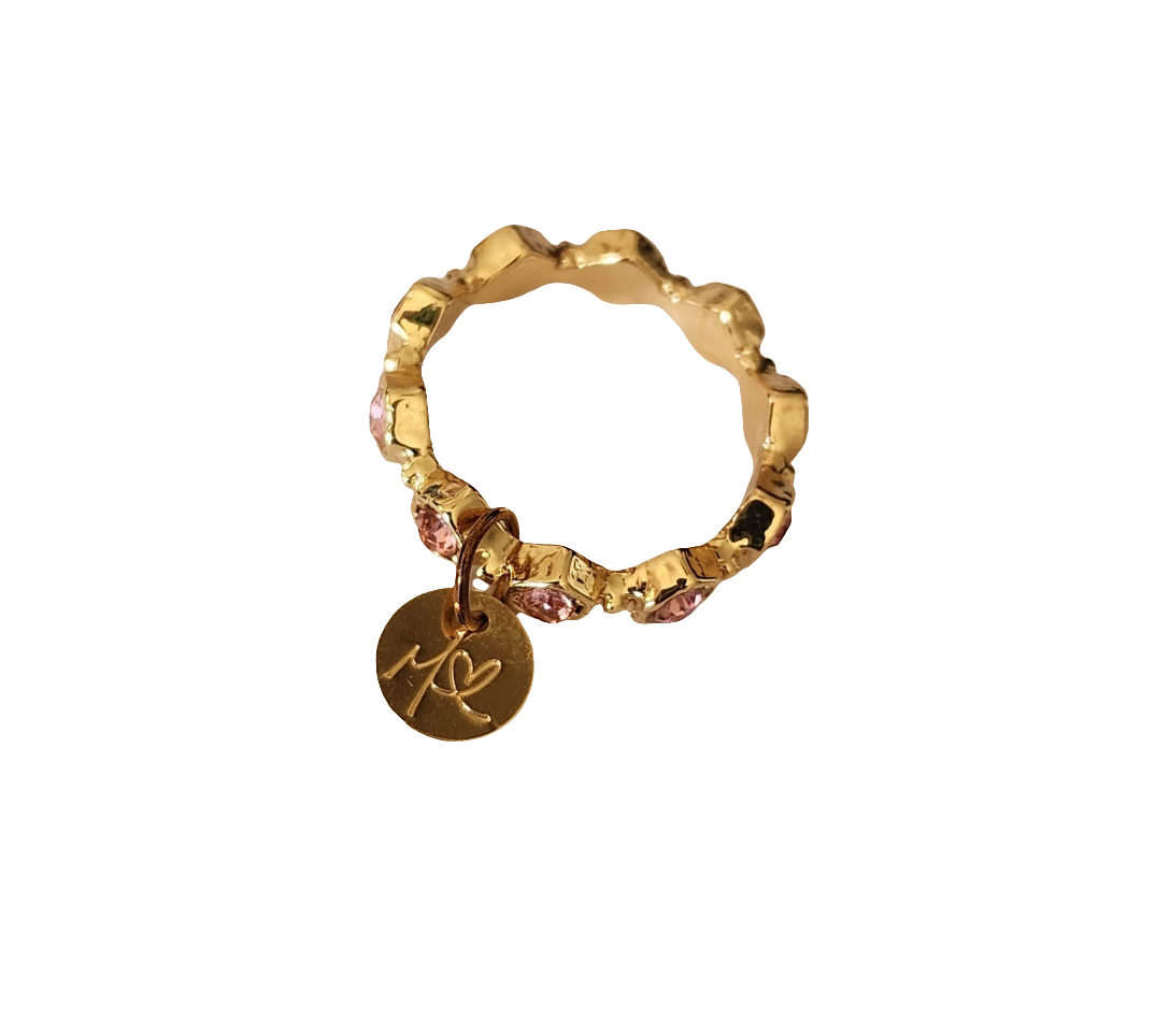 Anillo en aluminio chapado en oro 18k y zirconias color rosa