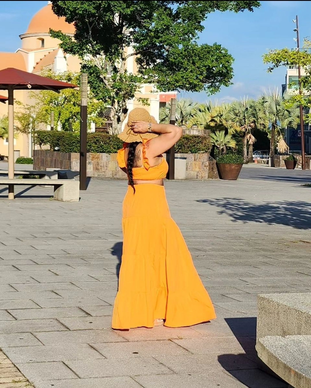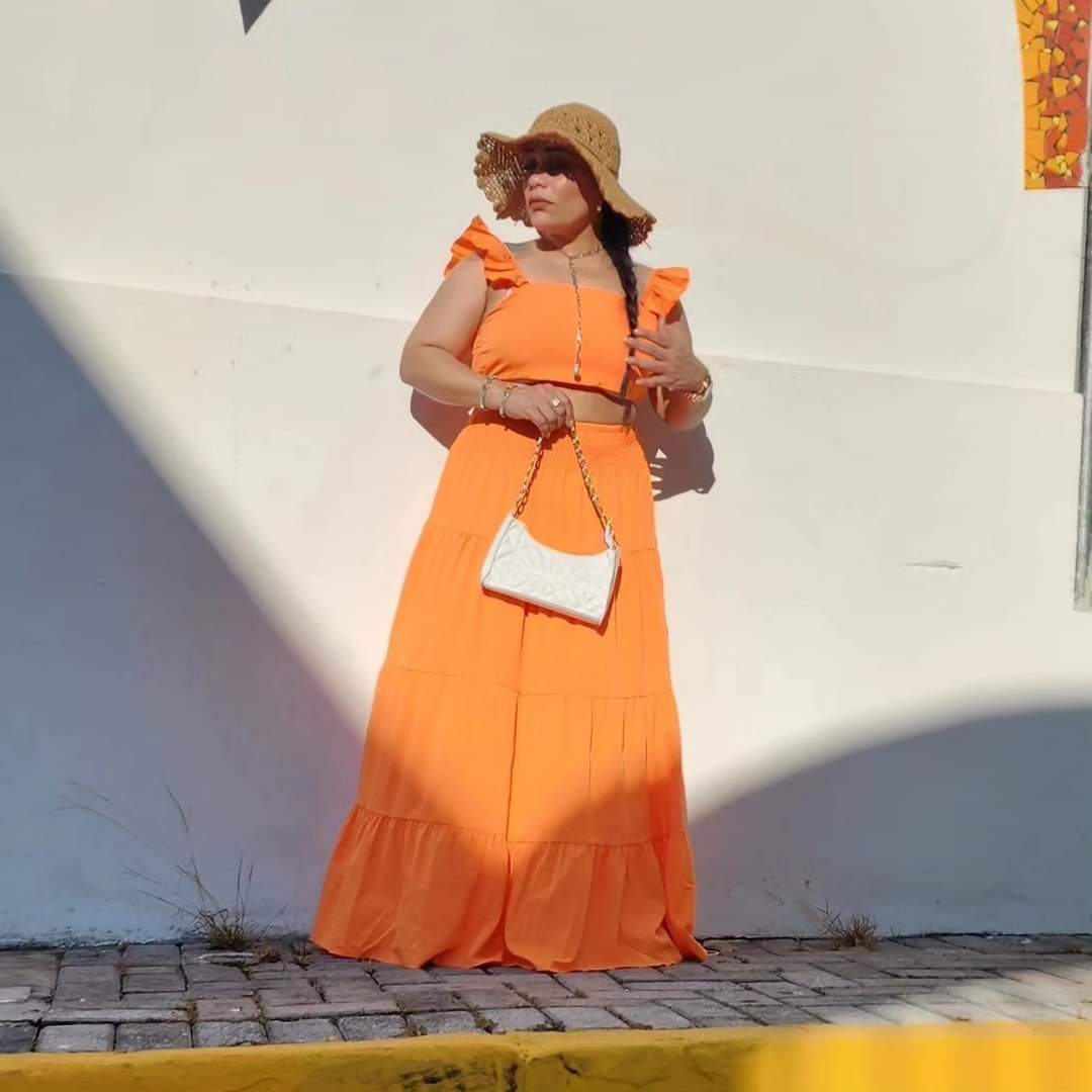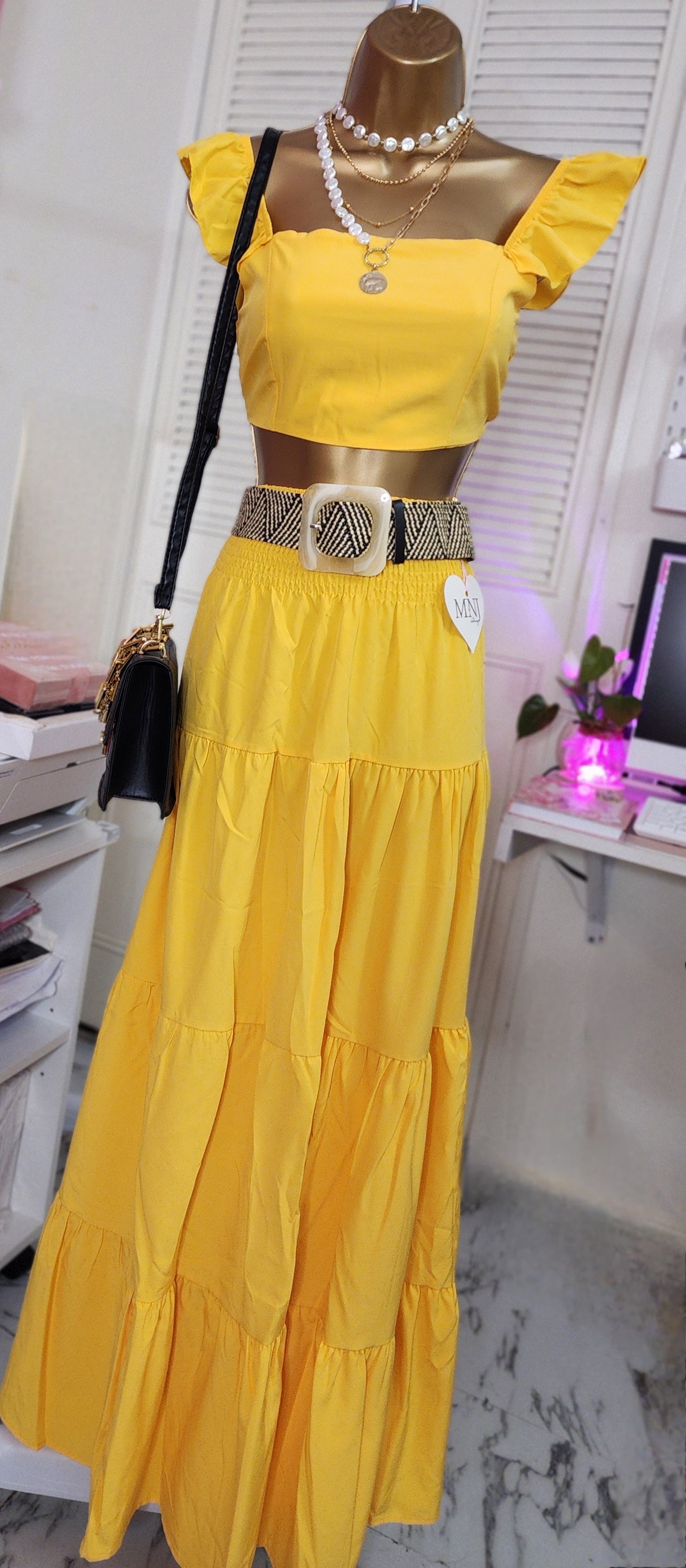 Set de falda y top en algodón, crop top con elástico en la parte trasera, falda larga con elástico en todo el área de la cintura, es de entalle alto. Perfecto para que hagas "Mix & Match"