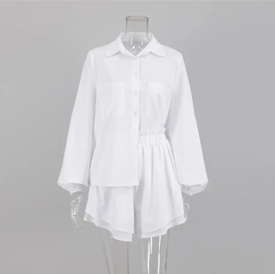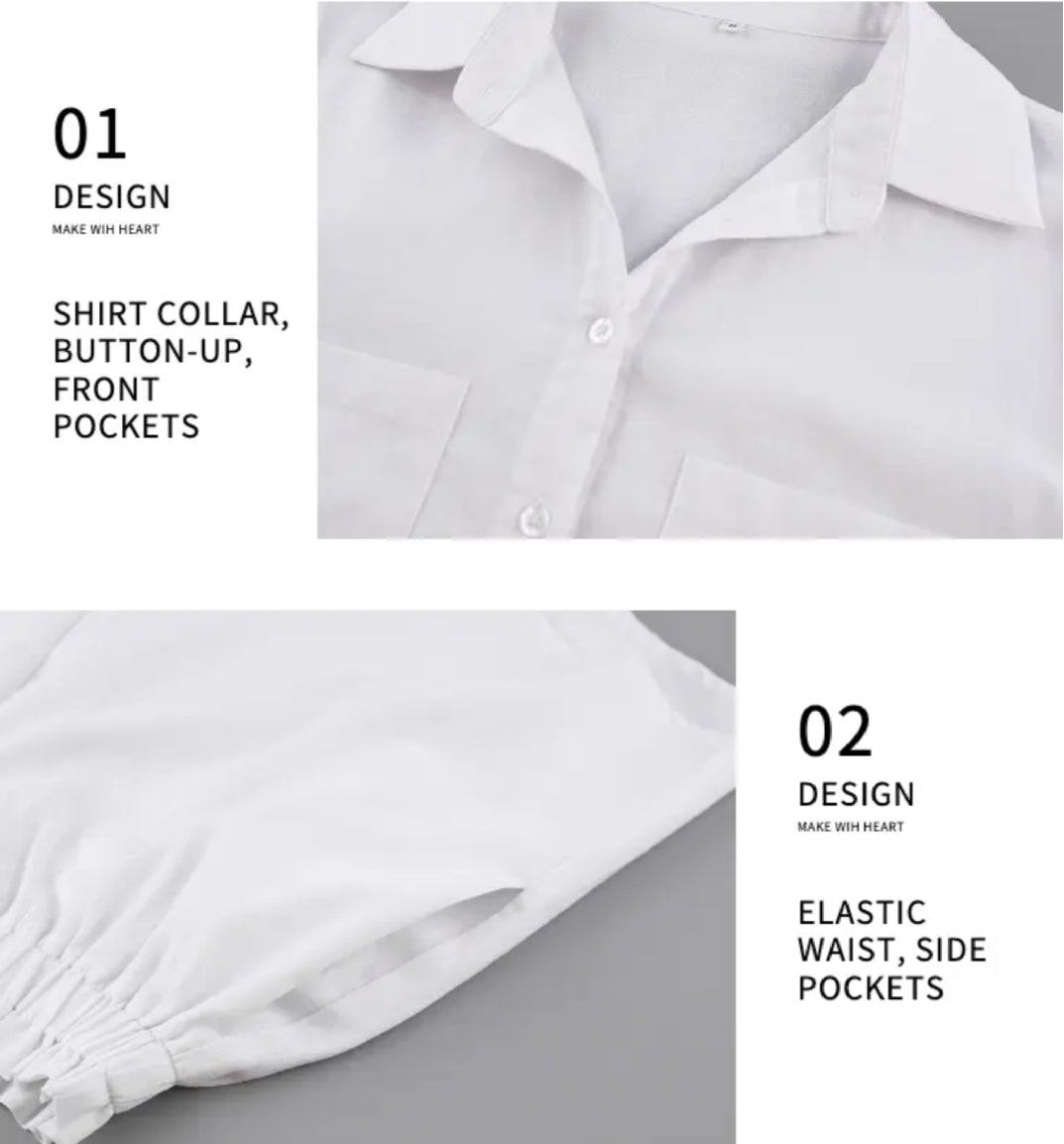 Camisa manga larga con elastico en aréa de la manga (muñeca), cuello, botones y 2 bolsillos funcionales en la parte frontal (busto)